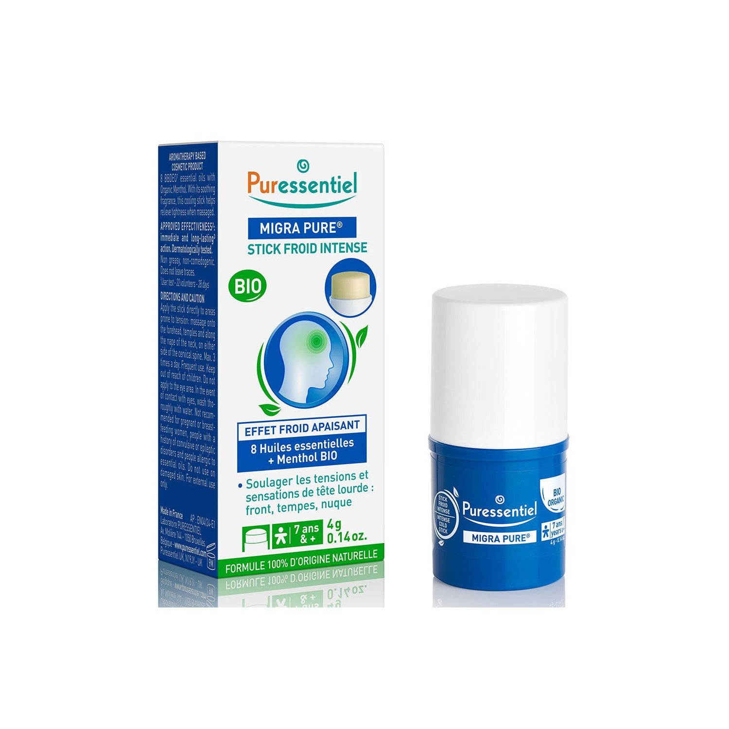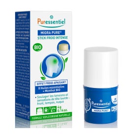 Puressentiel Migra Pure Stick Kold Intens 4 gr er en praktisk og effektiv løsning til at lindre spændinger og ubehag i hovedet. Dens intense kolde effekt giver hurtig lindring, der virker på mindre end ti minutter på spændingsområder som: