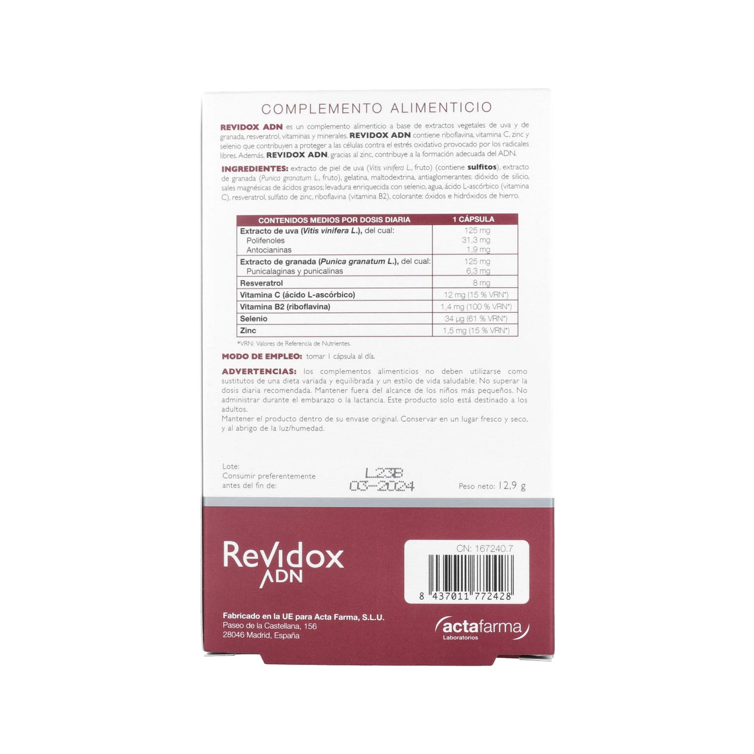 Som kosttilskud til en sund og afbalanceret kost er Revidox en fremragende behandling for at reducere virkningerne forårsaget af organismenes aldring. Takket være brugen af resveratrol , er en komponent, der forekommer i druesaften, dette produkt forhindret udseende af vigtige sundhedsproblemer.