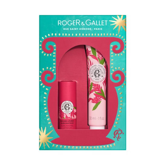 Roger & Gallet Gingembre Rouge Set Lip Balm + Hand Cream er et festligt sæt, der kombinerer elegance og personlig pleje. Designet til fejringer præsenterer dette sæt et duftunivers baseret på kreativiteten fra kunstneren Eclette, som har inspireret et levende og farverigt design.