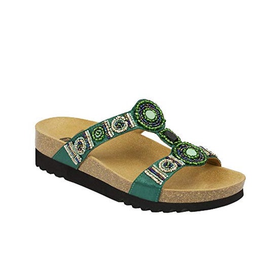 Bogotá er en sandal til varmesæsonen, der er designet til at holde foden i en korrekt position takket være sin ergonomiske sål af naturlig kork og gummi.