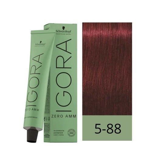 Schwarzkopf Igora Zero AMM Tinte Uden Ammoniak 5-88 60ml er et professionelt valg til permanent hårfarvning, ideelt til dem, der ønsker en intensiv dækning og naturlige resultater uden ammoniak. Designet til brug i saloner, tilbyder det en fuldstændig dækning af grå hår og en tone tro mod farvekataloget, hvilket giver en blød og behagelig oplevelse.