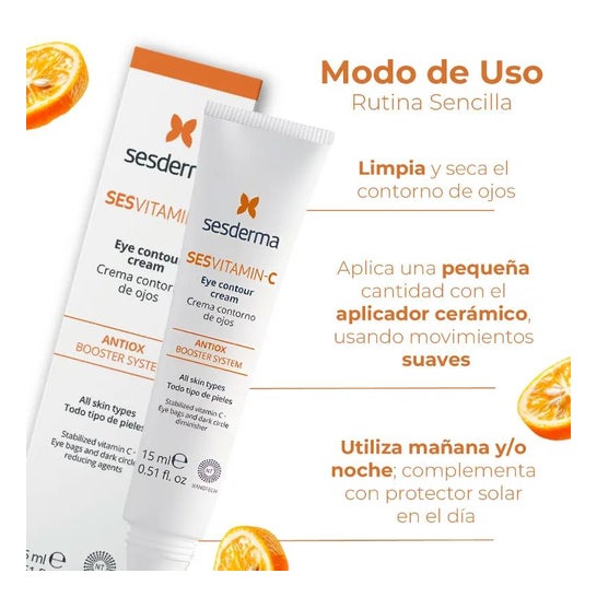 Sesderma C-Vit creme øjenkontur 15ml er en creme, der hydrerer og beskytter dybden i øjenområdet for at forebygge og effektivt behandle rynker, kragefødder, poser, mørke cirkler, tørhed og tegn på træthed .
