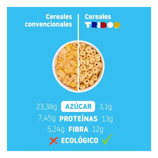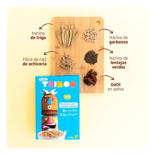 Økologisk korn til børn baseret på protein af bælgfrugter med en sprød konsistens. Den indeholder ikke tilsat sukker, sødestoffer eller tilsætningsstoffer. Det giver et højt indhold af fibre og energi til en god udvikling af organismen. Kan være det ideelle supplement til ethvert måltid i løbet af dagen. Indeholder gluten, mælk, nødder og sennep.