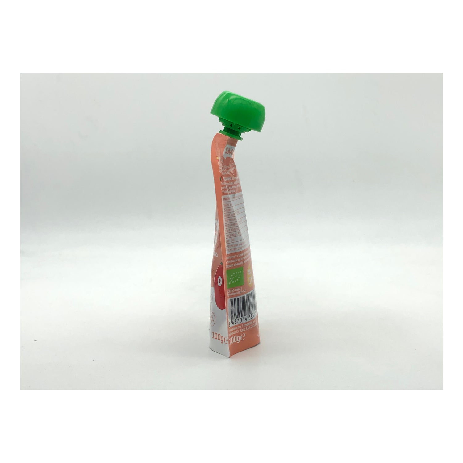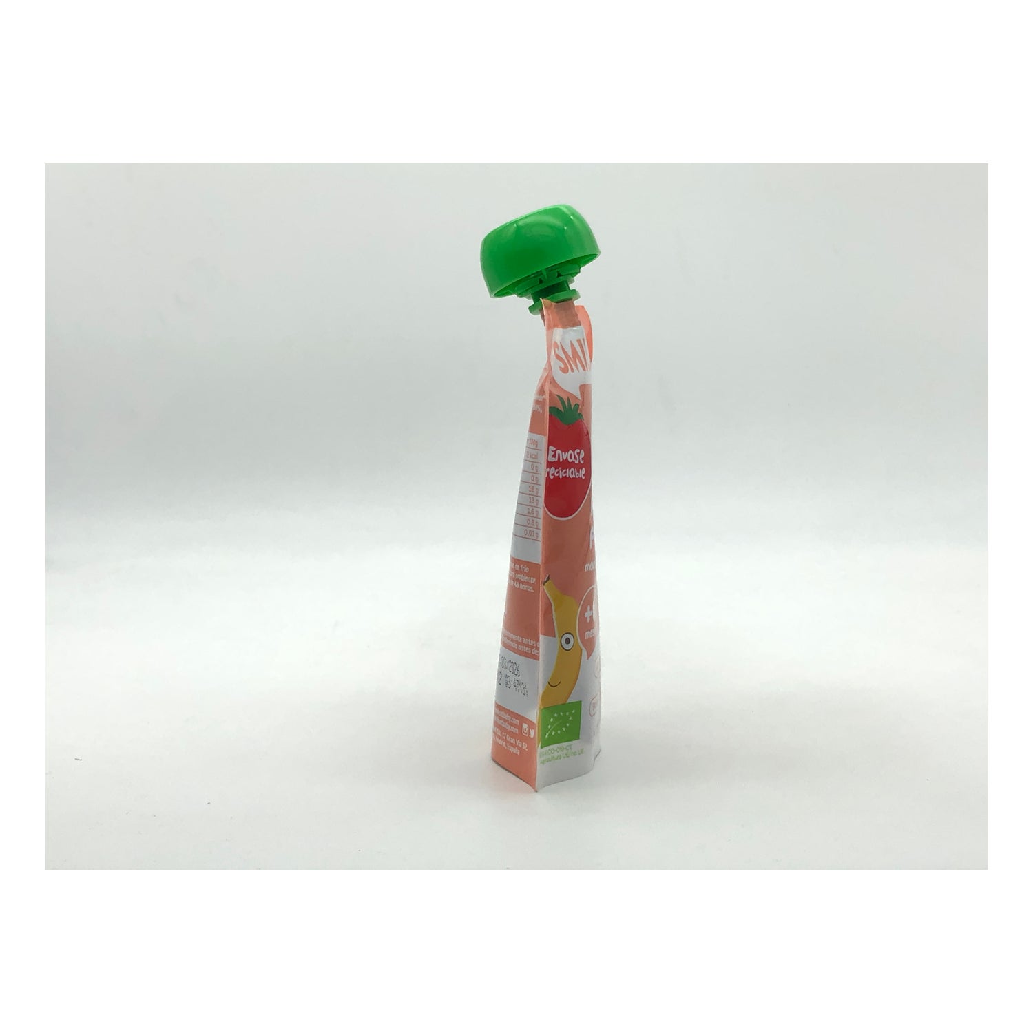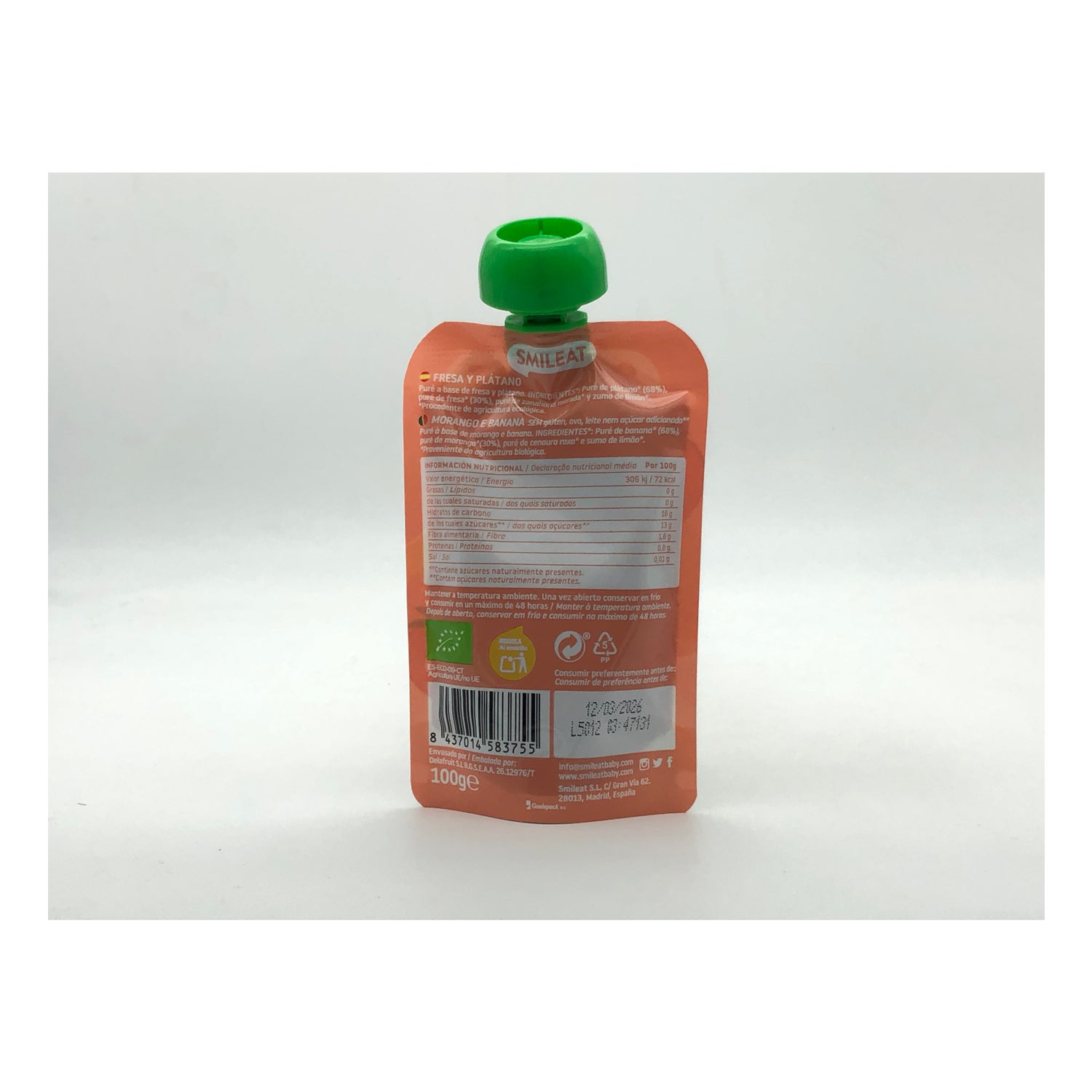 Smileat Jordbær Taske Og Organisk Banan er en jordbær og bananpose lavet med 100% økologiske ingredienser, og det indeholder ikke tilsatte sukkerarter .
