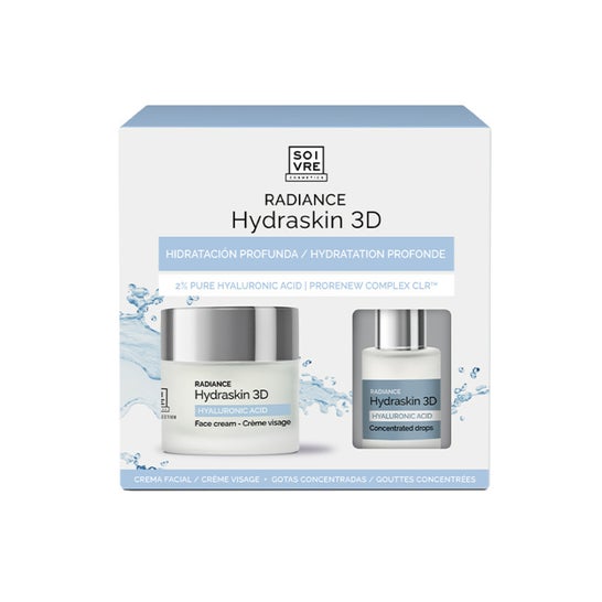 Soivre Cosmetics Radiance Hydraskin 3D Gaveæske Creme + Serum er et sæt, der inkluderer: