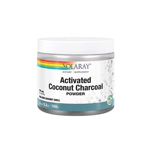 Solaray Active Carbon Powder 150 g er et pulveriseret kosttilskud baseret på aktivt kulstof, et pulver, der stammer fra kokosnøddeskaller. Dette supplement hjælper med at udøve en rensende effekt på kroppen takket være dets absorberende egenskaber