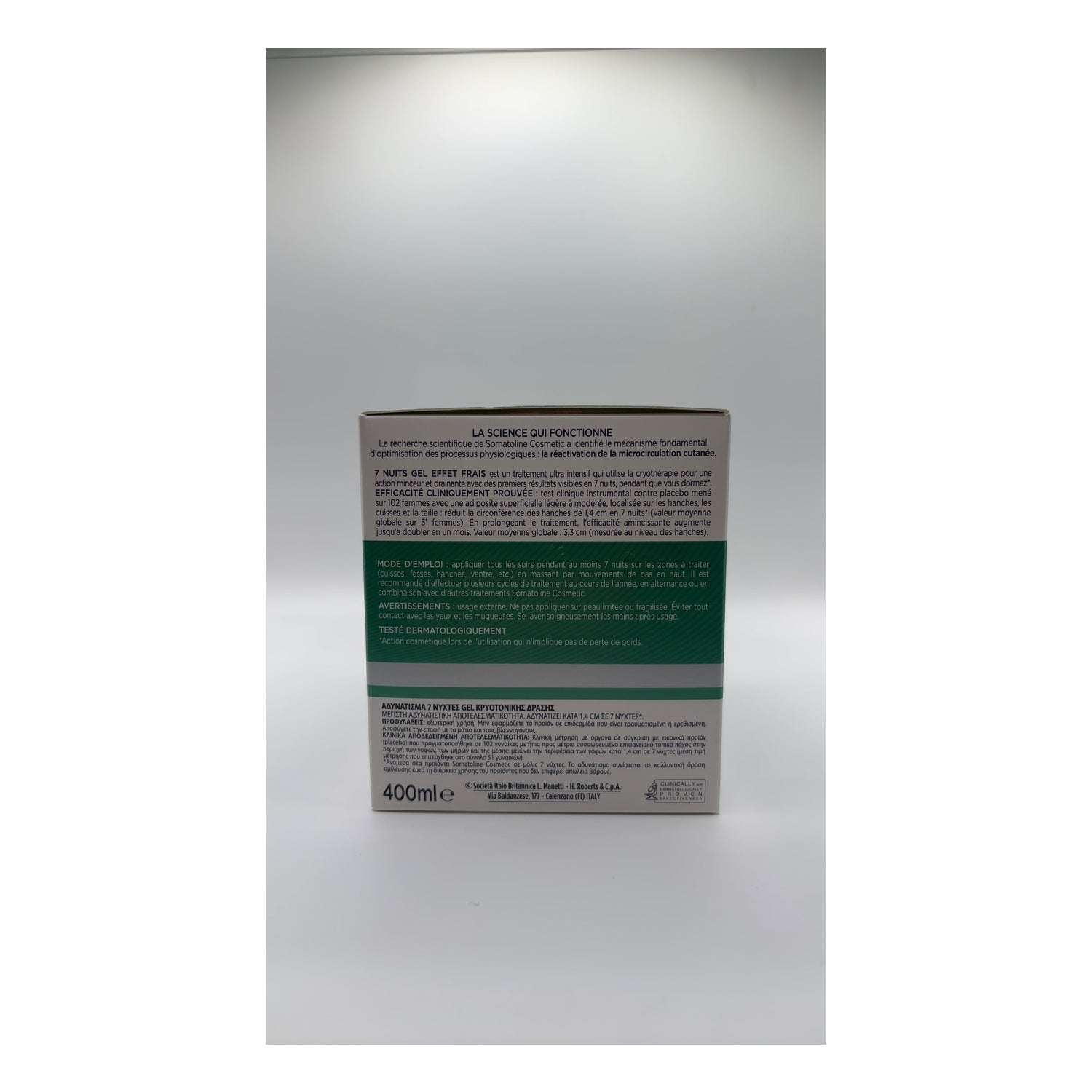 Den har den maksimale reduktionseffektivitet af Somatoline Cosmetic i kun 7 nætter *, takket være dets tredoblingsreducerende virkning: