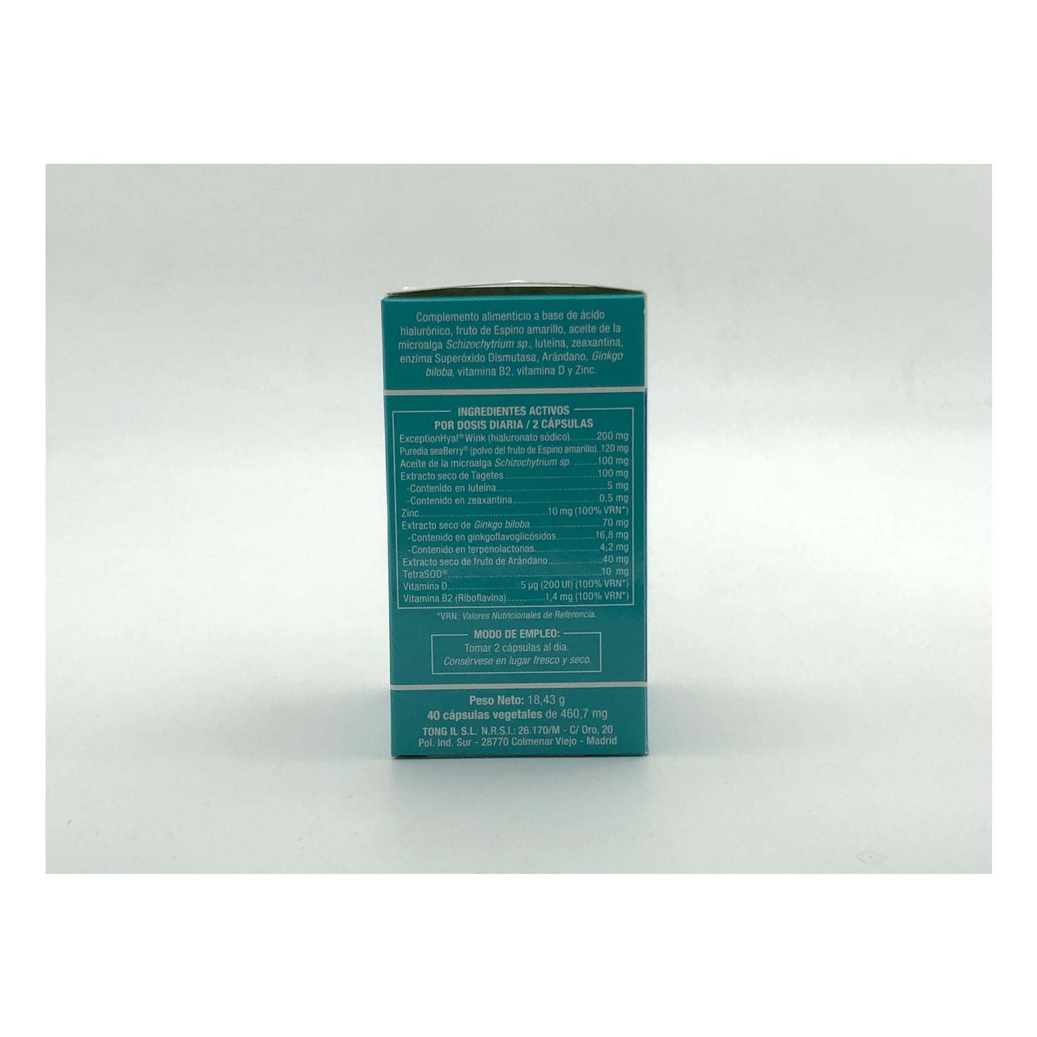 Et kosttilskud baseret på hyaluronsyre, havtornfrugt, olie fra mikroalgen Schizochytrium sp., lutein, zeaxanthin, enzymet superoxiddismutase, blåbær, ginkgo biloba, B2-vitamin, D-vitamin og zink.