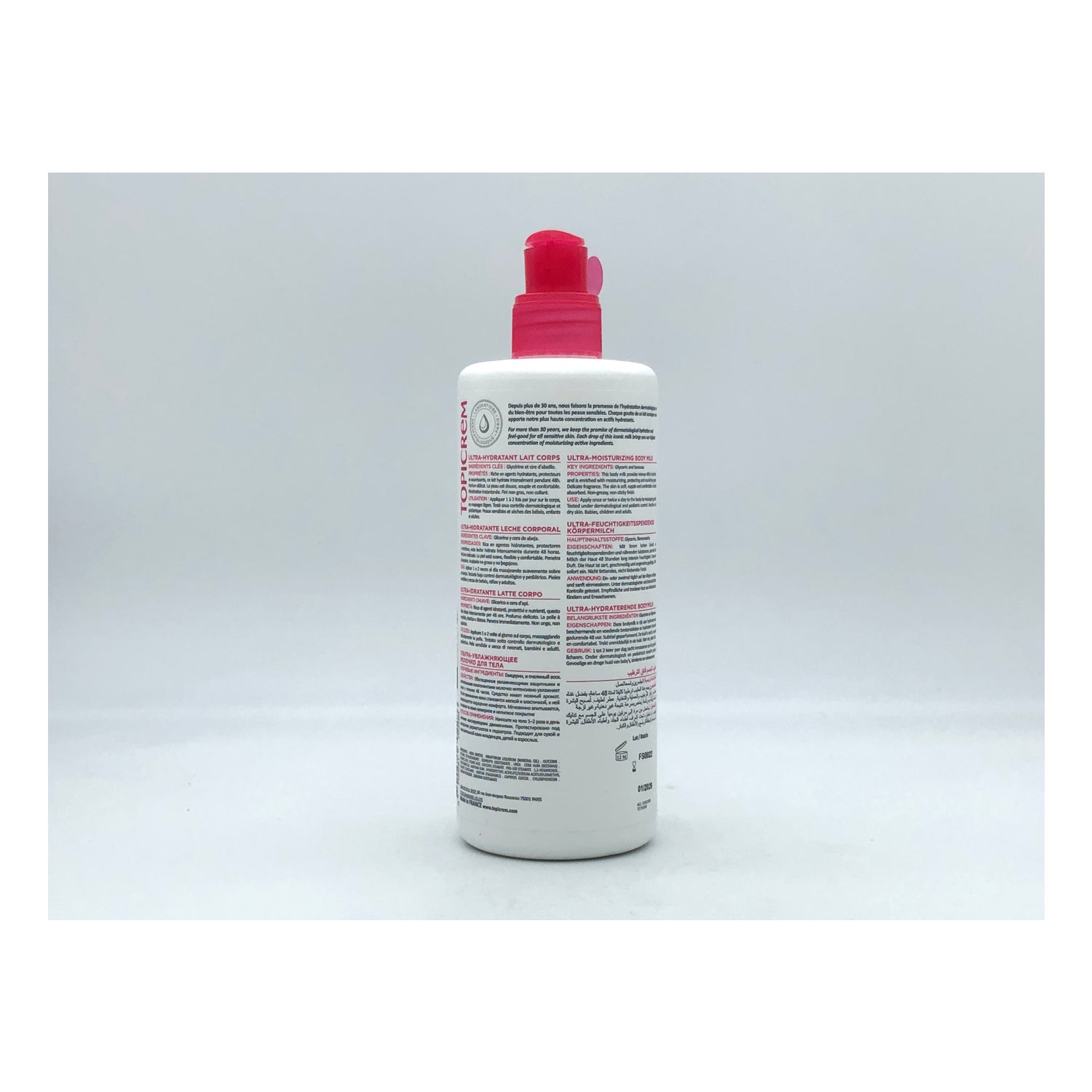 Topicrem Ultra-Moisturizing body milk er en fugtgivende lotion beriget med urinstof og glycerin, stoffer, som også beskytter og regenererer hudstrukturen i cirka 24 timer. Af den grund er den ideel til følsom og tør hud.