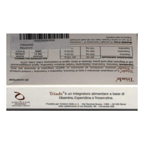 Omikron Triade 30comp er et venotonisk og vasoprotektivt kosttilskud baseret på diosmin, hesperidin og troxerutin, som hjælper med at øge blodkarrenes modstandskraft for at forbedre cirkulationen.