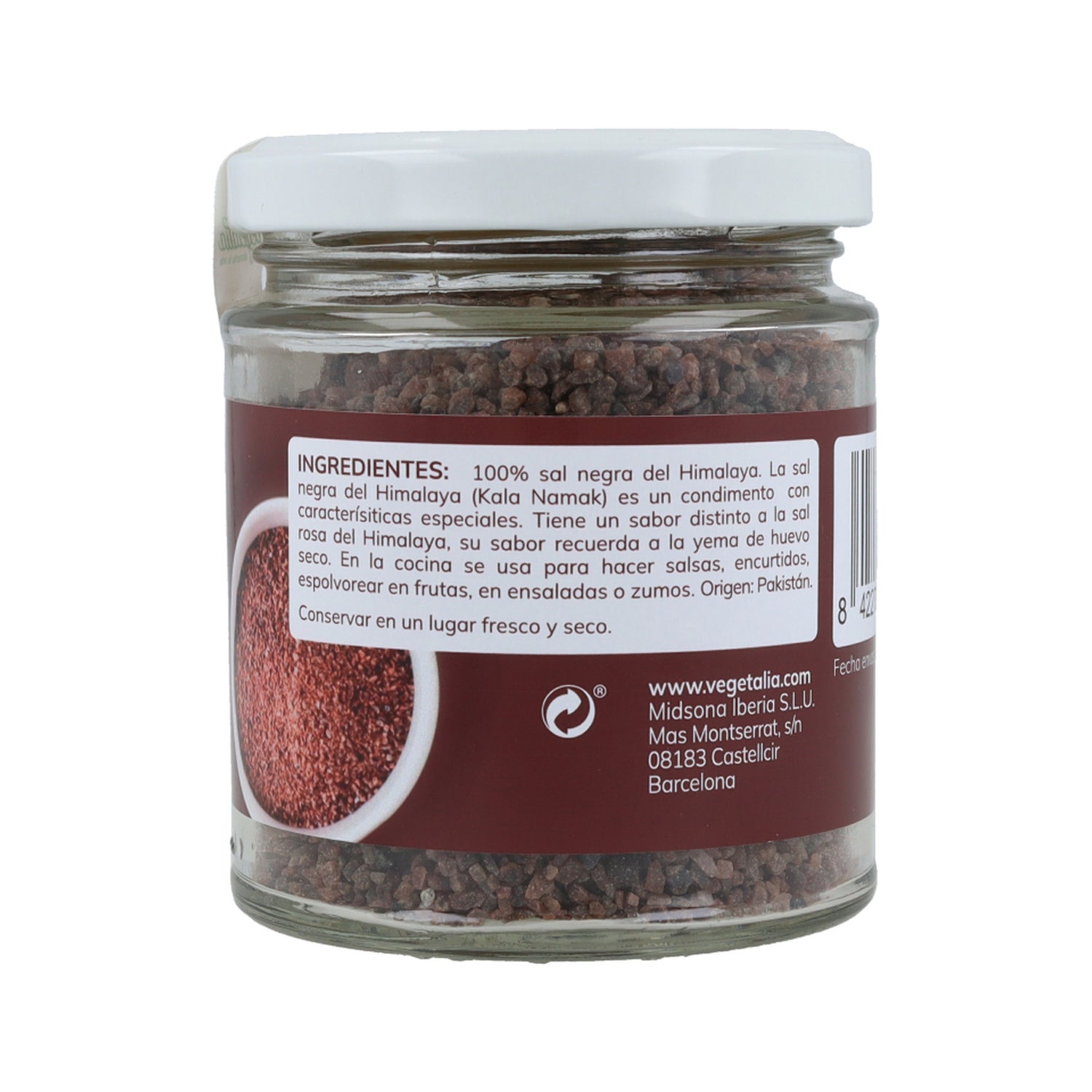 Sort Himalaya Kala Namak 100% naturlig, med højt jernindhold. Det er en type mineralsalt fra halit, udvundet fra Himalaya-bjergene. Det hjælper med at regulere blodtrykket, mobilisere og fjerne væsker samt forebygge muskelsmerter og kramper. Det er en krydderi, der passer til alle fødevarer. Indeholder calciumsulfat, kalium, magnesium, mangan, iod, fluor, zink, chrom, kobolt og kobber. Velegnet til veganere. I det indiske køkken bruges det til saucer, pickles, juice og til drysning af frugt. Det er et produkt med økologisk certificering.