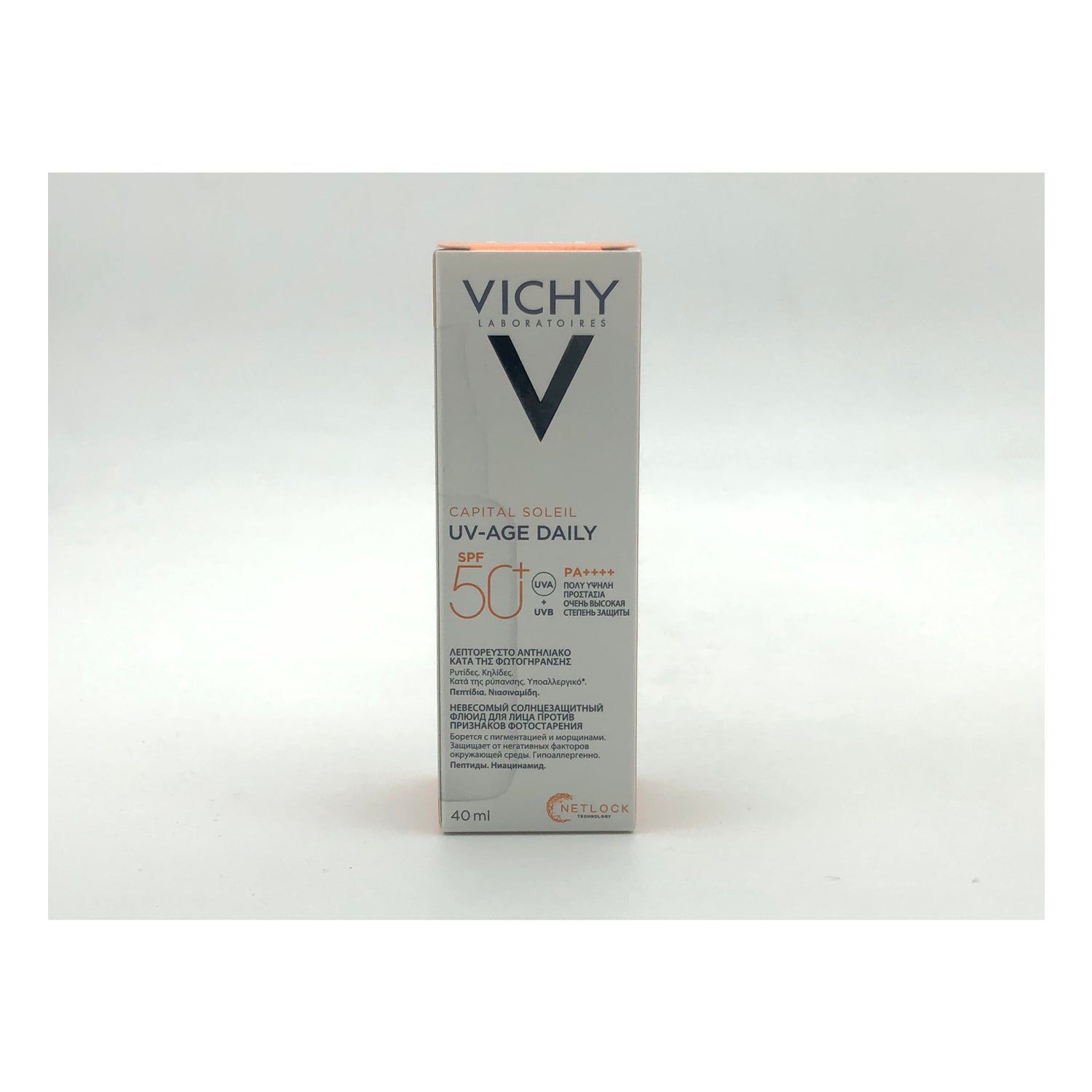 Fremstillet med Netclok-teknologi, der hjælper med at bevare formlens stabilitet, Nexoryl XL-filtersystem, der giver høj UVB SPF50+ beskyttelse og UVA PF46 beskyttelse, samt anti-ageing peptider og B3-vitamin, der hjælper med at bekæmpe tegn på fotoforældning og forebygger fremkomsten af pletter og mimiklinjer