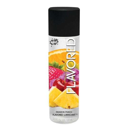 Wet Lubricants Flavored Lubricante Fruta de La Pasión 89ml er et produkt designet til at forbedre komforten og fornøjelsen i intime relationer. Dets formel giver en effektiv smøring med en silkeagtig tekstur og en lækker smag af frugt af passion, ideel til at tilføje sensualitet og sjov.