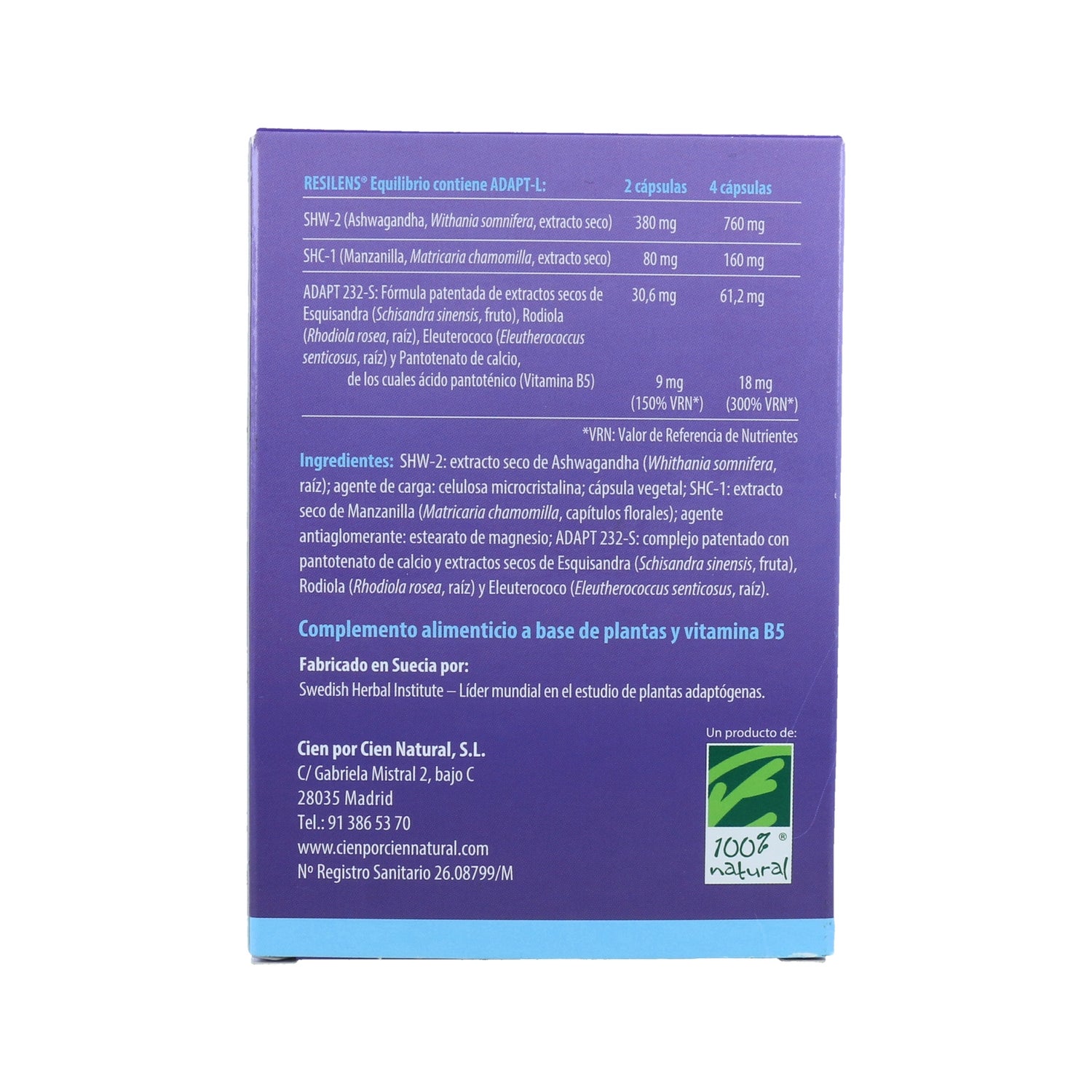 100% Natural Resiliens Equilibrio ist ein Nahrungsergänzungsmittel, das unserem Körper hilft, Stress besser zu bewältigen und die emotionale Stabilität sowie das körperliche und geistige Wohlbefinden zu erhalten.Die Kombination aus adaptogenen und entspannenden Pflanzen zusammen mit Vitamin B5 hilft uns, den täglichen Stress zu überwinden und den Cortisolzyklus zu normalisieren, d.h. Ruhe und Erholung.