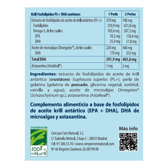 Jede 200 mg Kapsel dieses Nahrungsergänzungsmittels liefert das Äquivalent von 1000 mg DHA in Form von Triglyceriden. Darüber hinaus enthält die Formel Astaxanthin, ein natürliches Antioxidans, das die Vorteile von DHA ergänzt.