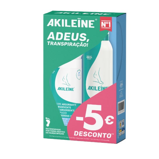 Akileïne Antitranspirant-Puder 75g + Schuhspray 150ml enthält:
