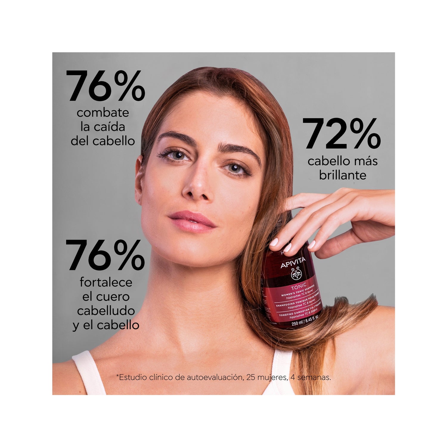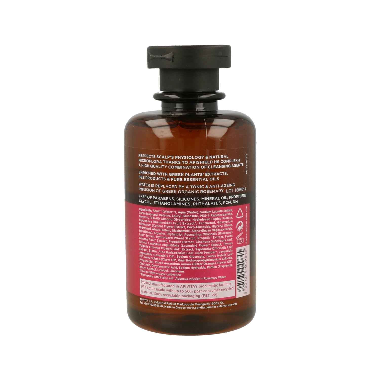 Das vitalisierende Shampoo gegen Haarausfall für Frauen von Apivita ist eine Pflegebehandlung, die geschwächtes Haar stärkt und nährt und die Kopfhaut vor Umweltfaktoren wie schädlichen Sonnenstrahlen und Umweltverschmutzung schützt.