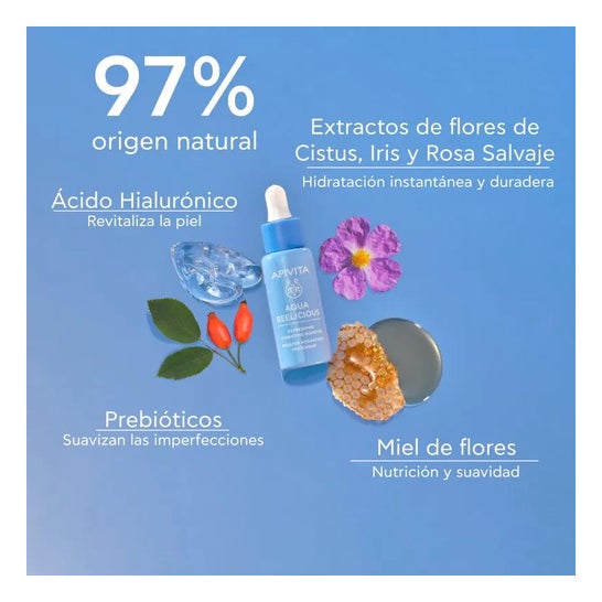 Apivita Aqua Beelicious Booster Moisturizer and Refresher 30ml ist ein Booster oder Enhancer in einem wässrigen Gel, formuliert mit Extrakten aus Zistusblüten, Iris, Wildrose, Honig, Aloe Vera und Hyaluronsäure. Seine Inhaltsstoffe sorgen für eine hohe Hydratation und lang anhaltende Frische und tragen gleichzeitig dazu bei, ungünstige Umweltbedingungen zu bekämpfen, das Gleichgewicht wieder herzustellen und Haut, die zu Irritationen oder Rötungen neigt, weicher zu machen. Die Formel stärkt auch die Haut, wirkt ausgleichend und revitalisierend.
