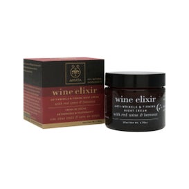 Apivita Wine Elixir Nachtcreme Anti-Falten und Straffung ist eine Nachtbehandlung mit straffender und revitalisierender Wirkung. Enthält Rotwein, der die Anzahl der tiefen Falten reduziert, und Bienenwachs, um das Gesicht zu verjüngen und zu beleuchten;