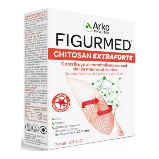 Arkopharma Figurmed Chitosan Extra Forte 30caps ist ein Extrakt, um die Absorption von Fetten aus der Nahrung zu bekämpfen, da es aus einem natürlichen Polymer gewonnen wird, das aus marinen Krustentieren (Chitin) gewonnen wird. Dies ist eines der am häufigsten vorkommenden natürlichen Polymere und ist ein Nahrungsergänzungsmittel, das Chrom enthält, ein Mineral, das an der Regulierung von Fetten und Zuckern beteiligt ist.