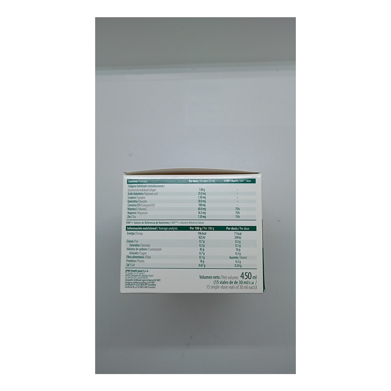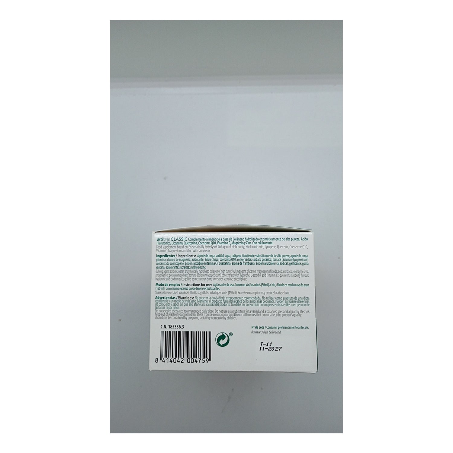 Sehr vollständig, mindestens zweimal im Jahr empfohlen, um die Gelenke in gutem Zustand zu halten. Es ist dicht und hat einen sehr süßen Geschmack, es ist ratsam, direkt nach der Einnahme ein Glas Wasser zu trinken.