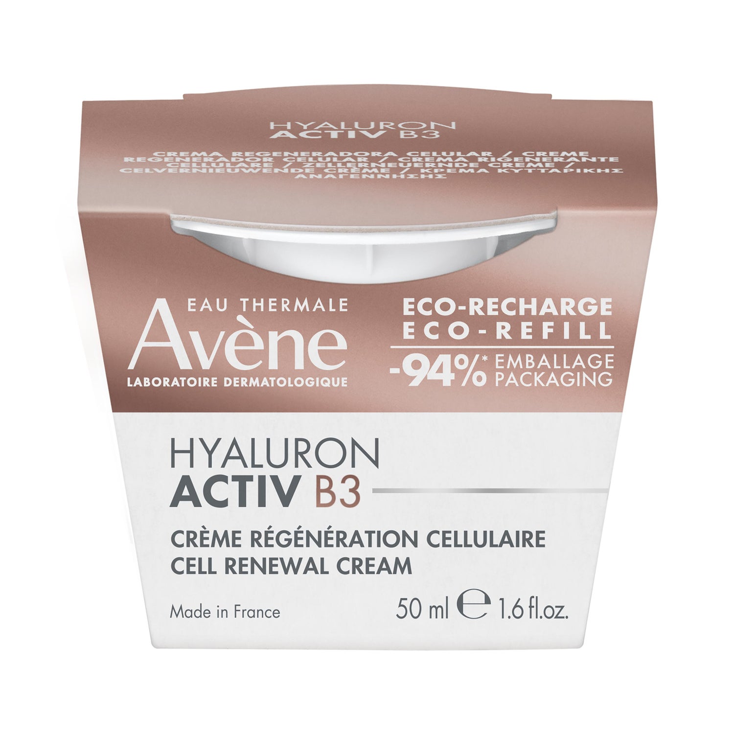 Avène Hyaluron Activ B3 Zellregenerierende Creme Nachfüllpackung 50ml ist eine Öko-Nachfüllpackung der zellregenerierenden Creme, die die Wiederverwendung des Original-Glastiegels ermöglicht.