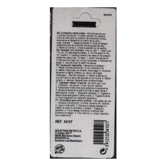 Beter Haarschneidemaschine Nase und Ohren ist eine einfache Maschine, um unbequeme Haare schnell von Nase und Ohren zu entfernen. Es ist eine sehr sichere und effektive Methode, um Haare von diesen Körperteilen zu entfernen. Wird von einer 1,5-Volt-Batterie AA betrieben.