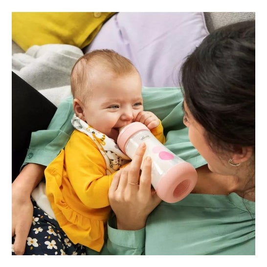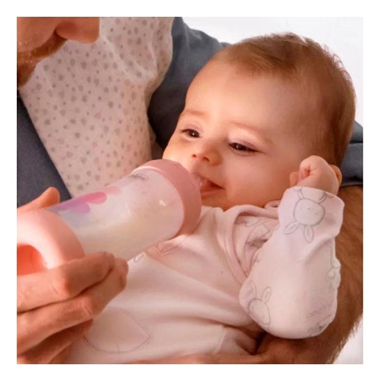 Die Flasche wurde mit einem System entwickelt, das eine intuitive und physiologische Ernährung begünstigt und zu einem natürlichen Saugrhythmus beiträgt. Der flache, symmetrische Silikonsauger begünstigt den richtigen Halt und die Bewegung der Zunge, und das Anti-Kolik-System fördert das Wohlbefinden des Babys während und nach dem Füttern. Langsamer Fluss. Geeignet für Babys ab 0 Monaten. *Die Farbe und das Design des Produkts können je nach Verfügbarkeit variieren.