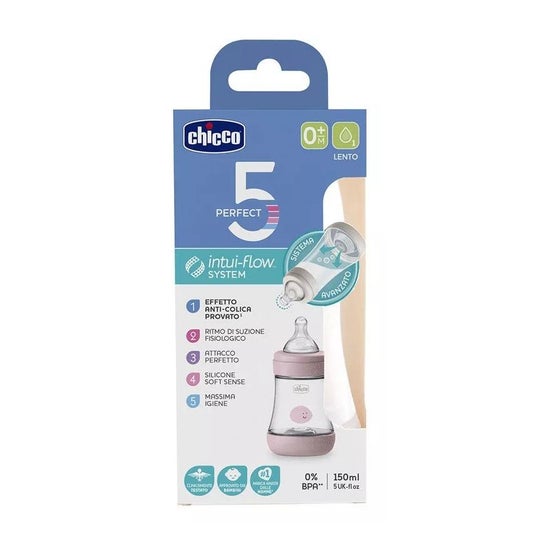 Biberon Perfect 5 0M+ 150ml Sil. Rosa