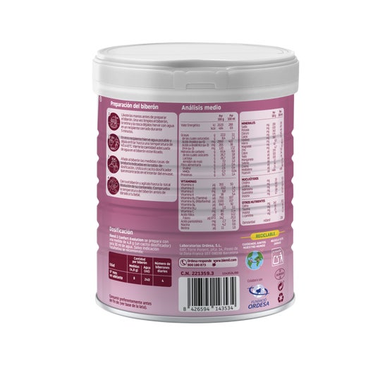 Außerdem enthält es 100% teilweise hydrolysierte Molkenproteine, die eine hohe Verdaulichkeit bieten, Maisstärke, die dazu beiträgt, leichte Regurgitationen zu reduzieren, und Inulin als präbiotische Faser, die hilft, die Hydratation zu stimulieren und Verstopfung vorzubeugen.