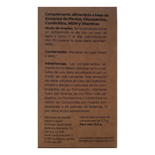 Dieses Nahrungsergänzungsmittel von Botanica Nutrients hilft bei Gelenk-, Band-, Knorpel- und Sehnenschmerzen. Ideal für Sportler oder Menschen mit Rheuma, Arthritis, Osteoarthritis oder Tendinitis. Hergestellt aus Glucosamin, Chondroitin, Vitamin C und Harpagophyt, vier aktiven Komponenten mit entzündungshemmenden Eigenschaften, die helfen, Steifigkeit, Entzündungen und Gelenkschmerzen zu reduzieren.