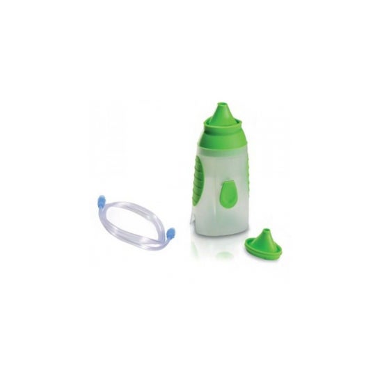 Dank der beiden enthaltenen Nasenadapter, einem für Erwachsene und einem für Kinder, ist sie für die ganze Familie geeignet. Dieses Gerät ist ideal, um die Nasenhöhlen mit Kochsalzlösung oder aerosolisierten Medikamenten zu spülen und zu behandeln, um die Verflüssigung der Sekrete zu fördern.