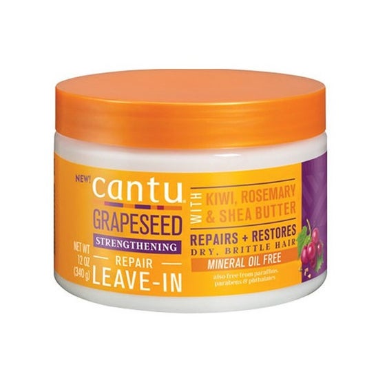Cantu Traubenkern Leave-In Stärkende Reparaturmaske 340g ist eine ausspülungsfreie Haarkur, die hilft, trockenes und brüchiges Haar zu reparieren und Spliss vorzubeugen.