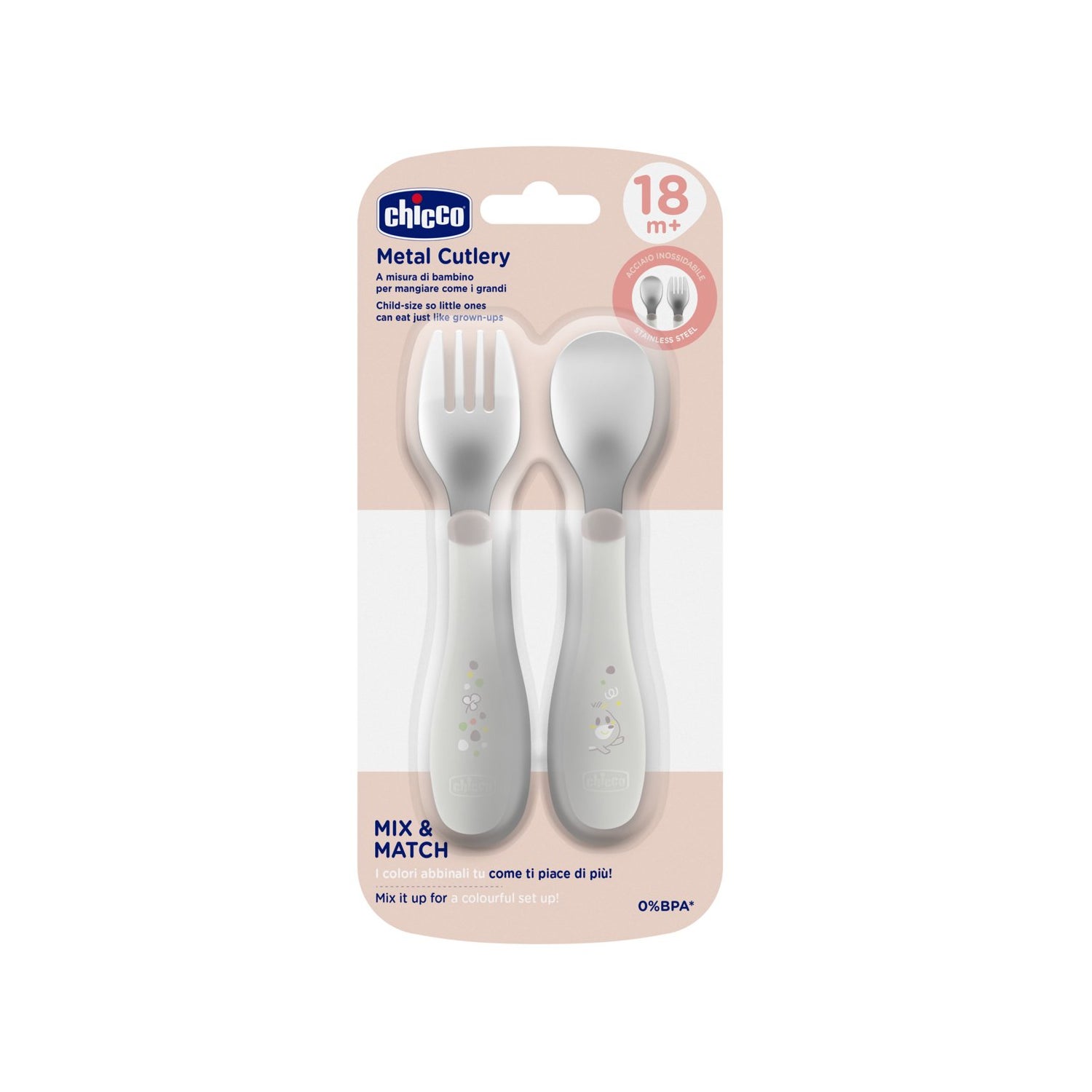 Chicco Set Duo Cubiertos Inox 18M+ Gris