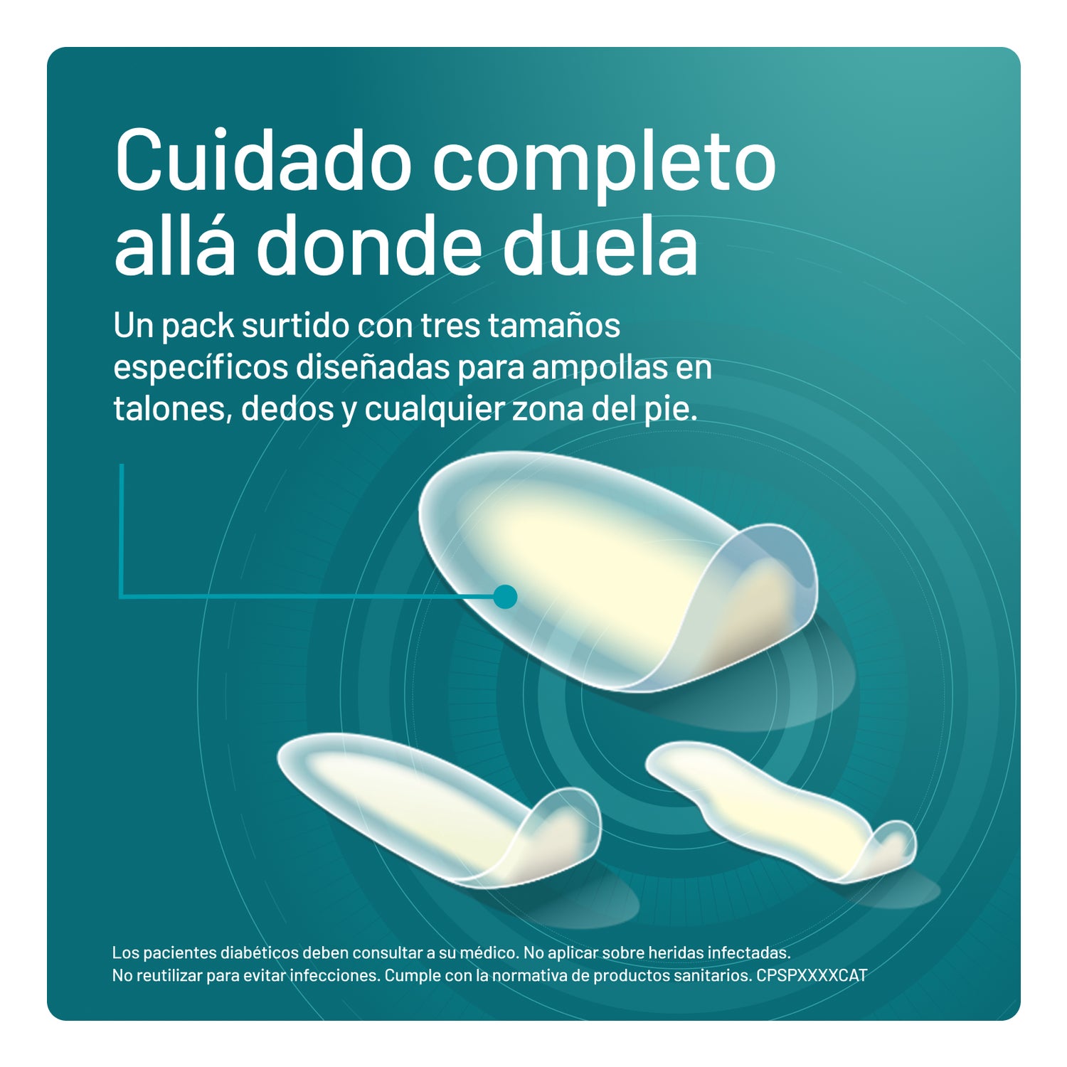 *Das Sortiment enthält: 2 Compeed-Verbände für mittlere Blasen 4,2 cm x 6,8 cm + 2 Compeed-Verbände für kleine Blasen 2 cm x 6 cm + 1 Compeed-Verband für Zehenblasen 1,7 cm x 5,1 cm.