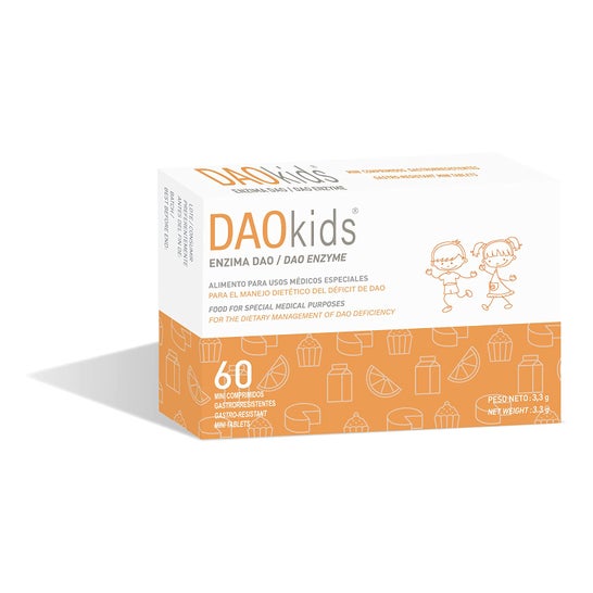 DAOkids 60comp ist ein Lebensmittel für besondere medizinische Zwecke, insbesondere für die diätetische Behandlung des DAO-Mangels (Diaminoxidase), der für die Verstoffwechselung von Histamin notwendig ist.