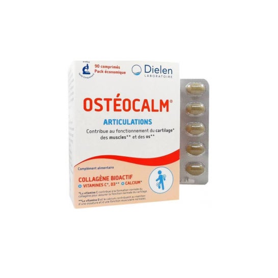 Ostéocalm Articulaciones 90 Tabletten ist ein Nahrungsergänzungsmittel, das für das reibungslose Funktionieren der Knorpel, Muskeln und Knochen beiträgt. Seine Formel auf der Basis von bioaktivem Kollagen, einem der Hauptbestandteile von Gelenken und Knochen, hilft, die Elastizität und Flexibilität der Gelenke zu stärken. Vitamin C ist für die Kollagenbildung unerlässlich. Vitamin D3 ist an der Kalziumabsorption beteiligt und trägt zur Erhaltung einer normalen Knochenstruktur bei. Zink schließlich ist ein essenzielles Spurenelement, das dazu beiträgt, das Risiko von Entzündungen zu verringern. Nahrungsergänzungsmittel sollten niemals eine gesunde, ausgewogene Ernährung ersetzen.