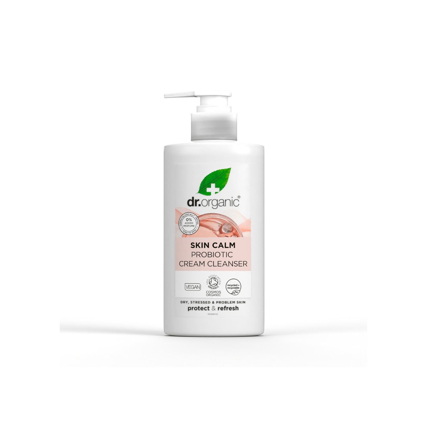 Dr. Organic Skin Calm Probiotic Reinigungscreme ist ein sanfter, milchiger Reiniger, der entwickelt wurde, um effektiv Unreinheiten, Make-up und Umweltverschmutzung zu entfernen, ohne die natürliche Hautbarriere zu beeinträchtigen. Seine Formel enthält Probiotika und Präbiotika, die helfen, die Hautmikrobiota zu stärken und so eine genährte, beruhigte und ausgewogene Haut zu fördern.