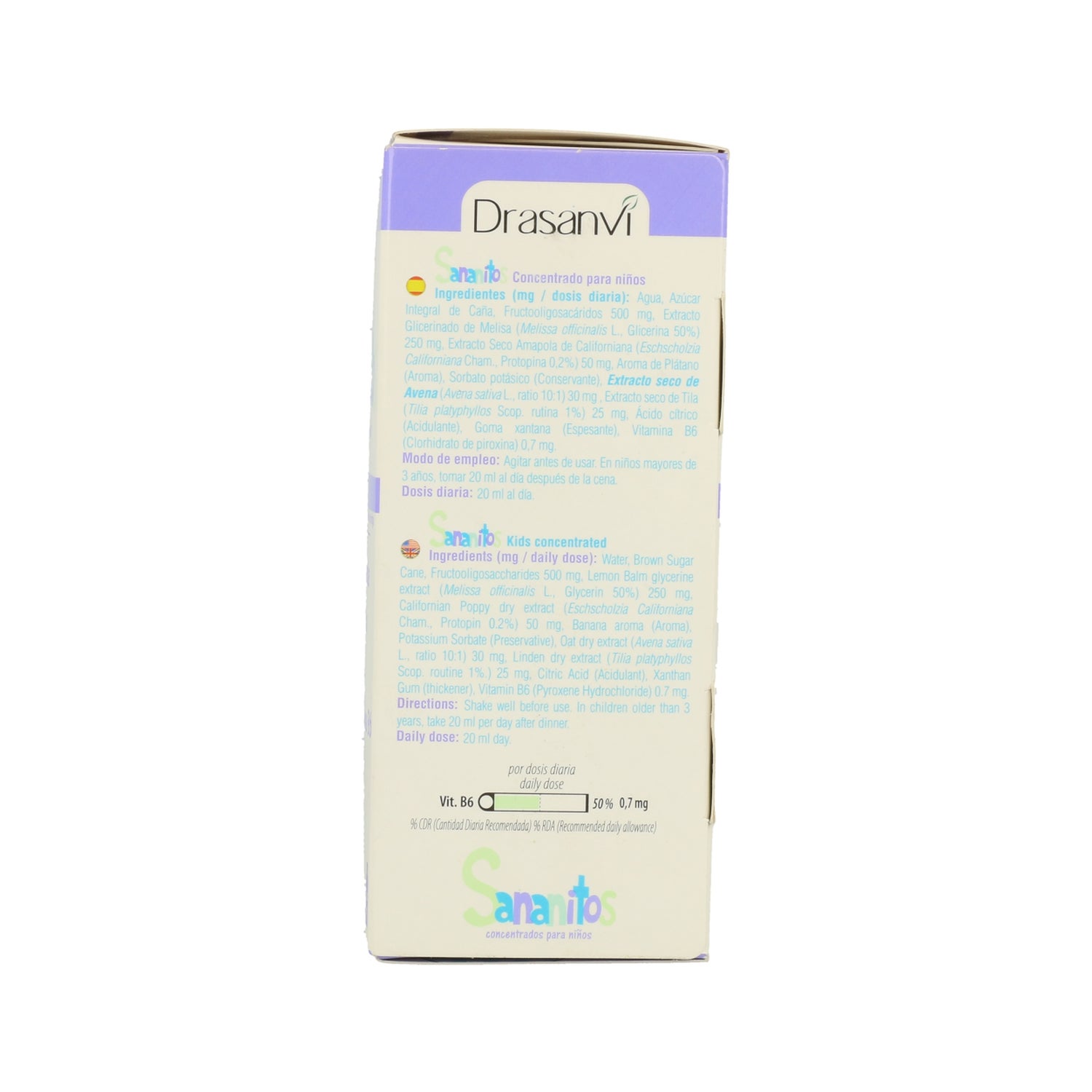 Sananitos Descanso ist ein Nahrungsergänzungsmittel von Drasanvi, das Ihrem Kind hilft, einzuschlafen. Wenn Ihr Kind verärgert ist und Schlafstörungen hat, hilft ihm der Sananitos Descanso Sirup, sich besser auszuruhen.