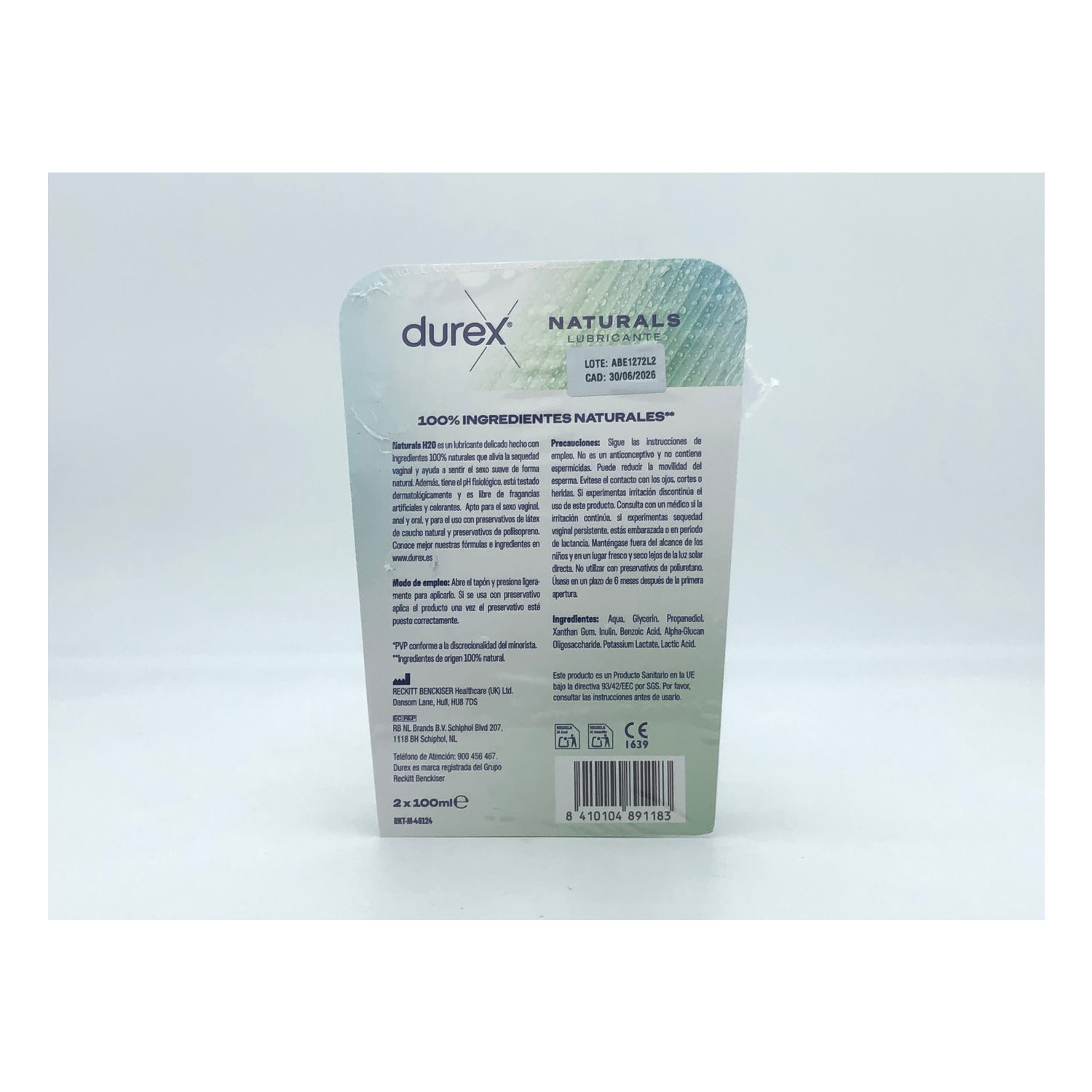 Durex Naturals Lubricant H2O Original 2x100ml ist ein mit natürlichen Inhaltsstoffen formuliertes Gleitgel, das mit der Verwendung von Latexkondomen und Sexspielzeug kompatibel ist.