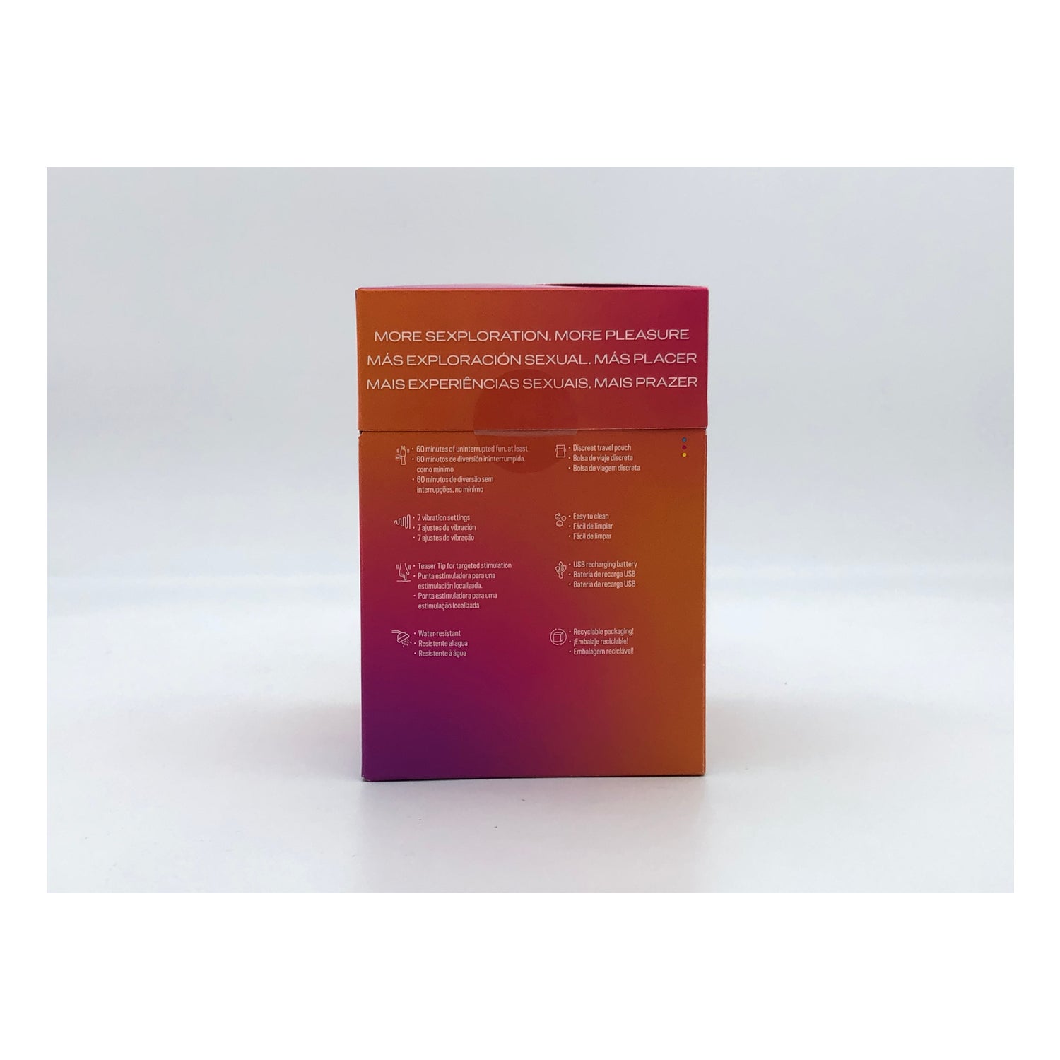 Er hat 7 verschiedene Vibrationsstufen, eine stimulierende Spitze und ist wasserdicht. es ist über USB wiederaufladbar und hat eine Akkulaufzeit von 60 Minuten. Es kann in Kombination mit einem Gleitmittel auf Wasserbasis von Durex verwendet werden.