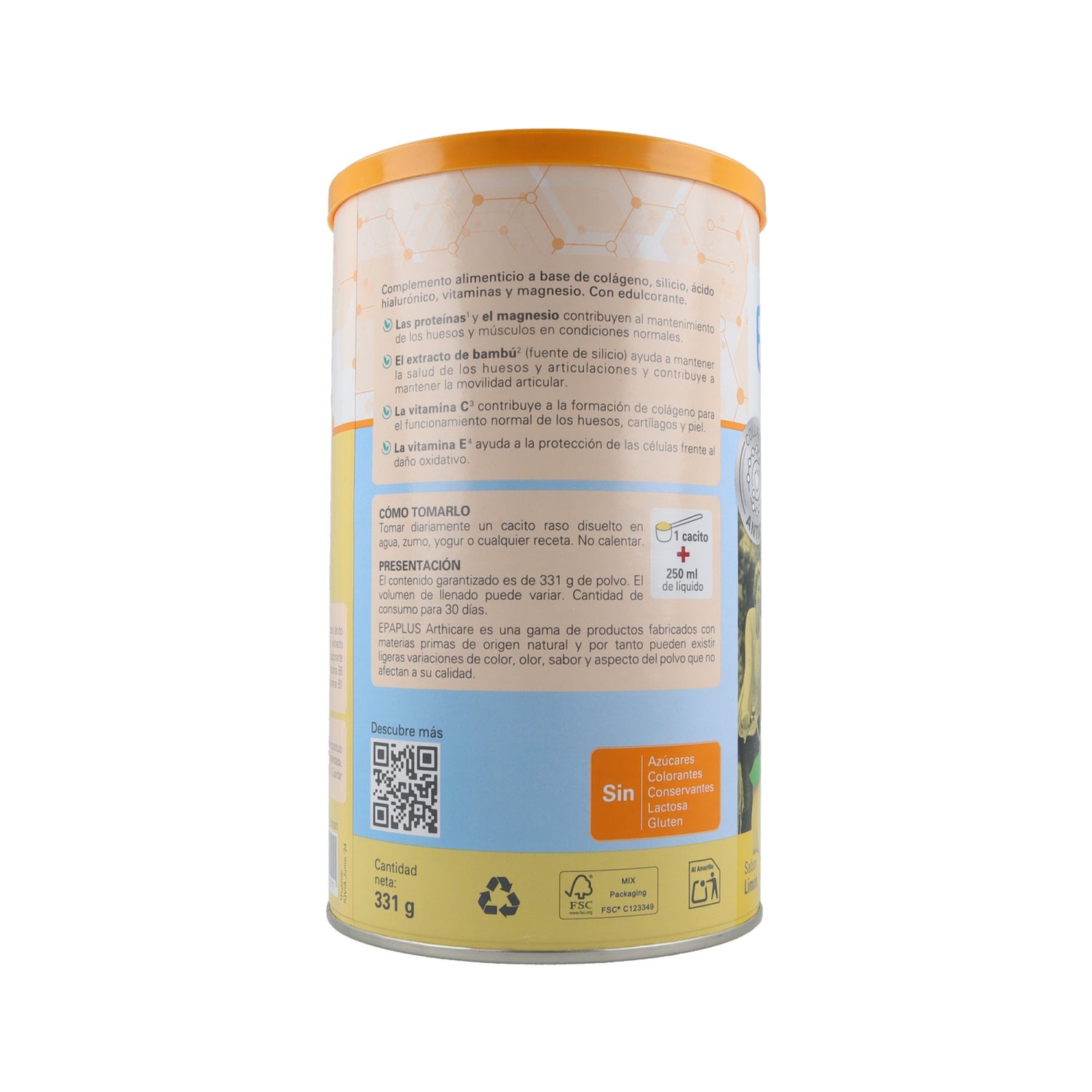 Epaplus Arthicare Gelenke Kollagen Antiox Zitrone 331g ist ein Nahrungsergänzungsmittel, das speziell entwickelt wurde, um die Gelenke zu unterstützen, basierend auf hydrolysiertem Kollagen, Silizium (aus Bambusextrakt), Hyaluronsäure, Magnesium, Vitamin C, Vitamin E und den Vitaminen B1, B2 und B6.