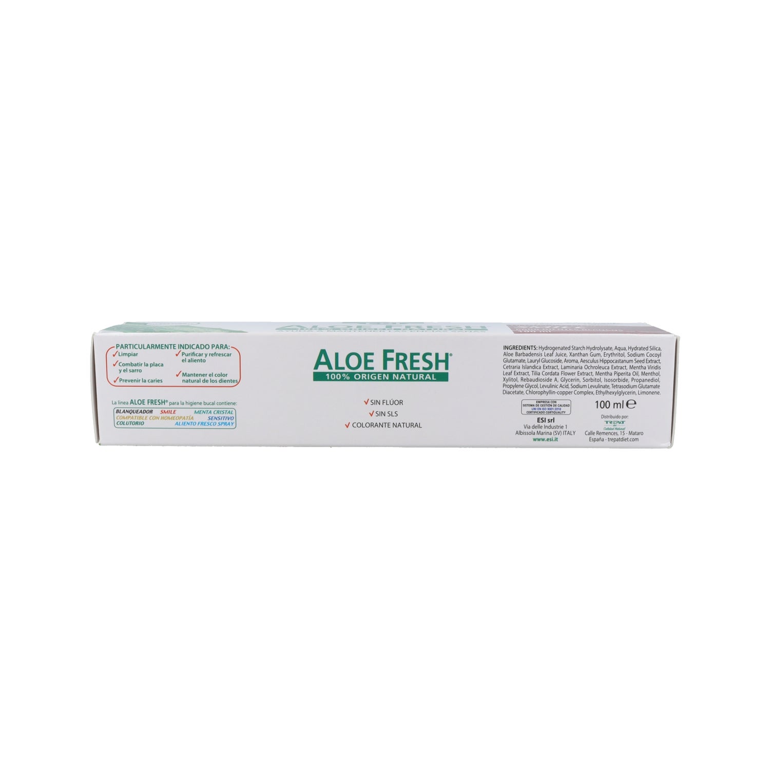Die Zahnpasta aus der Aloe Fresh Smile Linie von ESI enthält 100% natürliche Wirkstoffe, die helfen, das gesunde Zahnfleisch zu erhalten und die Zähne auch in den unzugänglichsten Ecken zu reinigen. Darüber hinaus beseitigt es dank seiner Aufhellungseigenschaften die Schuppenbildung und lässt den Schmelz vollständig weiß werden. Mit Aloe Fresh Smile erhalten Sie weiße Zähne und ein angenehmes Gefühl von Frische!