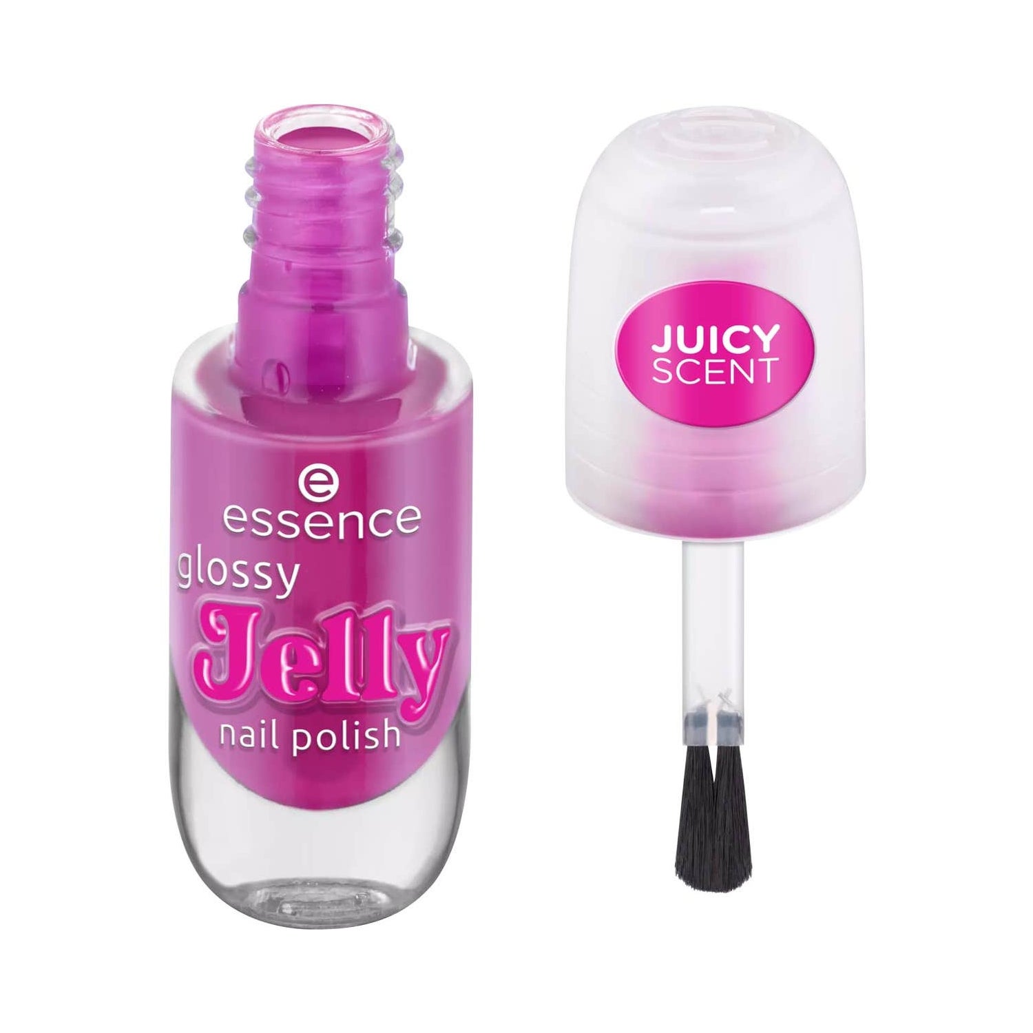 Essence Glossy Jelly Nagellack 01 Summer Splash 8ml ist ein magenta-lila Nagellack, der ein fruchtiges Aroma verleiht.