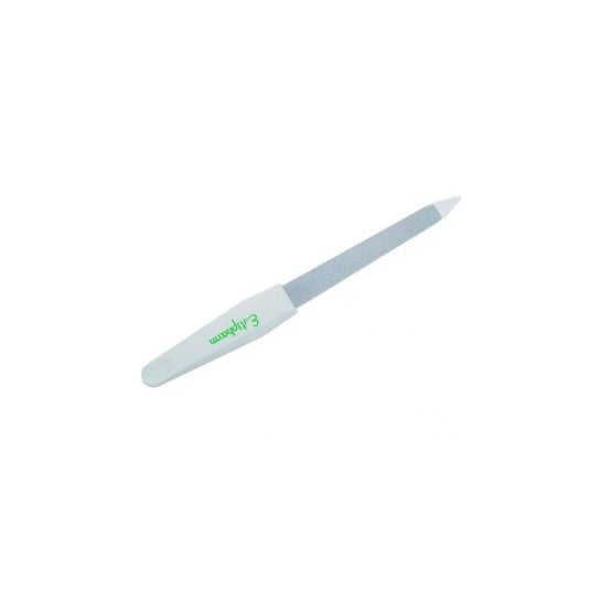 Die Feile hat eine doppelte Seite, die es erleichtert, die Form zu geben und die Oberfläche des Nagels in wenigen Minuten zu glätten, wodurch Brüche und Abblättern vorgebeugt wird. Ihre spitze Spitze ist nützlich für die Reinigung unter den Nägeln, was die Hygiene und Ästhetik der Hände verbessert.