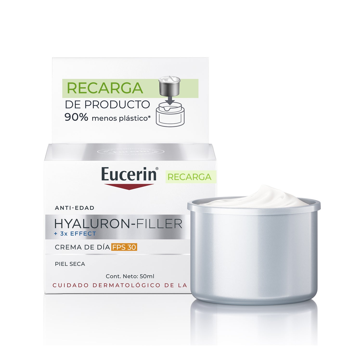 Diese Nachfüllung von Eucerin Hyaluron-Filler Triple Effect +3x Tagescreme LSF 30 hilft auch, Plastikabfälle zu reduzieren und trägt zu einem nachhaltigeren Produktzyklus bei. Sie ist kompatibel mit allen Verpackungen von Eucerin Gesichtspflege.