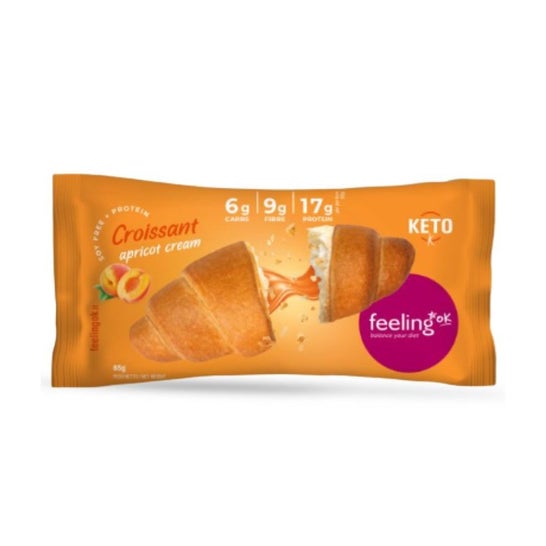 Feeling Ok Croissant Proteinfüllung Aprikosencreme 65g ist ein schmackhafter Protein-Croissant, ideal für das Frühstück oder als Gourmet-Snack. Dieses Produkt der italienischen Handwerksmarke Feeling Ok präsentiert sich als gesunde Alternative zu traditionellen Croissants und ermöglicht es, die Nährstoffzufuhr zu optimieren, ohne auf den Geschmack zu verzichten.