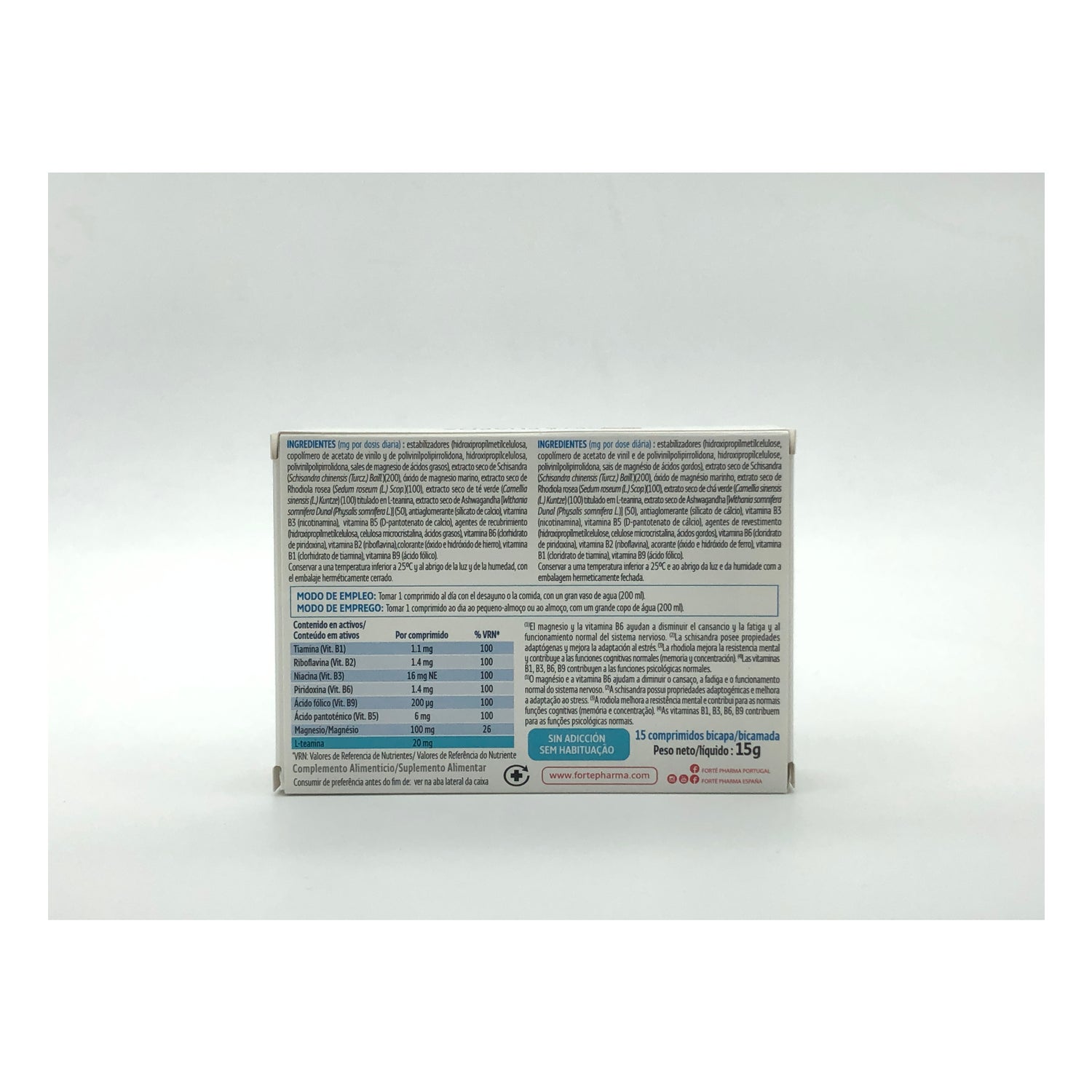 Forté Pharma Forté Stress 24h 15comp ist ein Nahrungsergänzungsmittel, dessen Formel adaptogene Pflanzen und natürliche Wirkstoffe in einer Doppelschichttablette mit doppelter Wirkstofffreisetzung kombiniert, um eine sofortige und anhaltende Wirkung zu erzielen. Es hilft, die Müdigkeit zu verringern und das emotionale Gleichgewicht zu verbessern, dank des marinen Magnesiums und des Vitamins B6. Darüber hinaus enthält es die Vitamine B1, B2, B3, B5 sowie die Aminosäure L-Theanin für ein besseres psychisches Wohlbefinden.