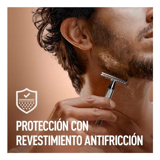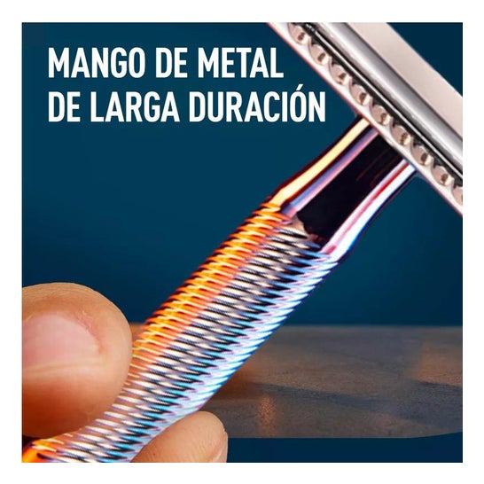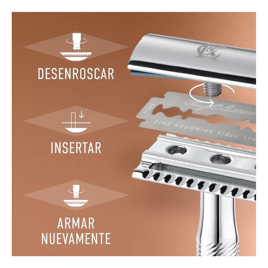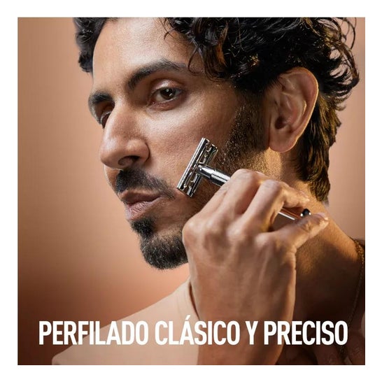 Sicherheitsrasierer mit zweischneidiger Klinge. Hilft bei der präzisen Rasur mit einem professionellen Finish. Ideal für die Anwendung an den Konturen von Gesicht, Hals und Ohren, da die Möglichkeit größerer Schnitte in der Haut vermieden wird. Ideal für die Rasur aller Haartypen.
