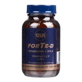 Es ist ein Nahrungsergänzungsmittel, das die normale Funktion des Immunsystems unterstützt. Seine spezialisierte Formel konzentriert verschiedene Vitamine und Mineralstoffe, die die Durchblutung der weißen Blutkörperchen fördern und Immunität gegen infektiöse biologische Erreger schaffen. Die Formel dieses Ergänzungsmittels enthält: · Vitamin C: Stärkt die Immunantwort und hilft, Grippe und Erkältungen vorzubeugen. · Vitamin D: Aktiviert und schützt die Immunzellen. · Beta-Glucane: Stimulieren auf natürliche Weise das Immunsystem. · Zink: Beteiligt sich am Gleichgewicht des Abwehrsystems des Körpers und an der Zellteilung sowie dem Zellwachstum. Nahrungsergänzungsmittel reich an Mineralien und Vitaminen, die den Körper nähren und zur Erhöhung der Antikörperproduktion beitragen, die die Gesundheit schützen. Darreichungsform: 90 Tabletten.